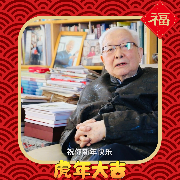 圖為方漢奇向李瞻的拜年視頻截圖