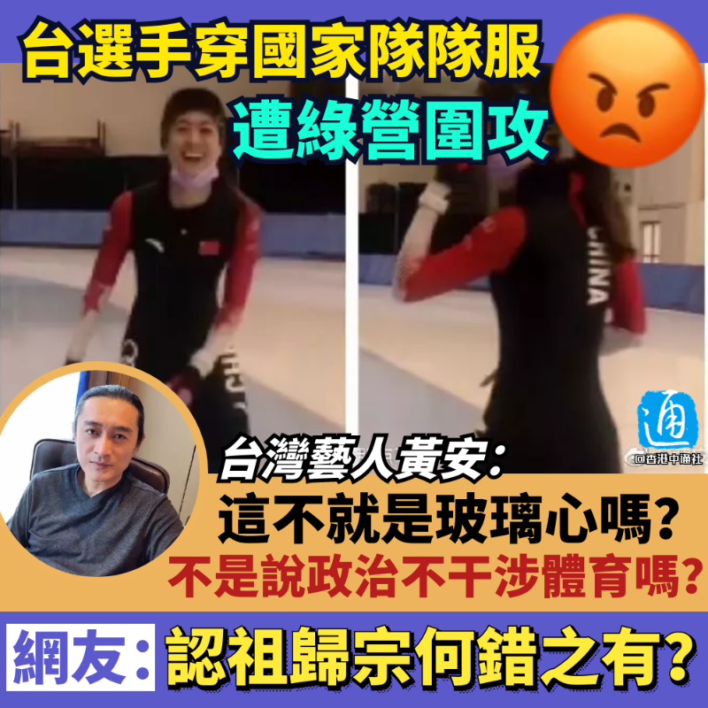 香港新聞網2月4日電 北京冬奧開幕在即,台灣綠營卻被運動員穿的一件衣服刺痛了玻璃心,對其口誅筆伐。見此,台藝人黃安犀利諷刺:不是說政治不要干涉體育嗎? 日前,台灣速度滑冰選手黃郁婷在社交媒體上曬出了一段自己身穿中國國家隊隊服的訓練視頻。此“擁抱大陸”的行為隨即引來台綠媒和網軍的口誅筆伐。 在綠營的騷擾及攻擊下,黃郁婷其後刪除了視頻,並在社交媒體發文回應稱,這件訓練服只是中國國家隊朋友送給她的禮物。她表示,“運動歸運動。你可以不為我加油,但記得幫你支援的運動員加油。” 3日,台灣“體育署”回應事件時聲稱,黃郁婷是“敏感度不足”,不會取消其參賽資格。