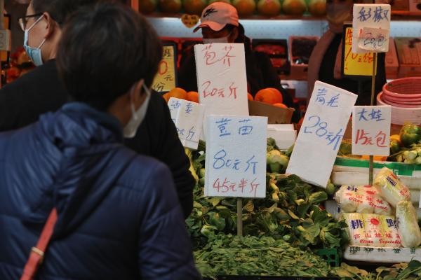 香港中通社記者 謝光磊 攝 日前,因跨境司機確診,香港與內地間鮮貨主要通道文錦渡口岸兩度關閉,供港蔬菜大減,使菜價上升四至六成;盡管現時已逐步恢復正常,但“捱貴菜”的現象並未明顯改善,有菜檔已改賣本地菜。 早在上世紀七十年代,農業也曾是香港重要產業,本地生產的蔬菜佔食用量八成,那是香港農業“黃金時代”。但香港農場面積細小,可謂精耕細作,隨著內地平價農產品大量供應香港,加上四大經濟支柱愈發穩固,農業也日漸式微。 市民每日消耗的食材大多是由外地輸入,而農民供應的各類農產品,並非用來與市場競爭,而是補充不足。