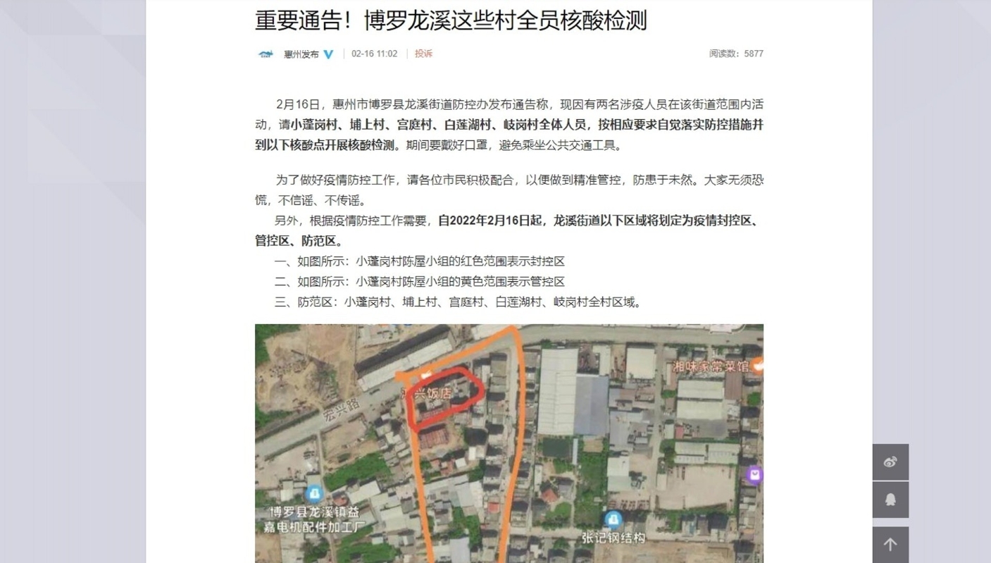 媒體還繼續深挖、發佈上述二人偷渡的細節,指2月14日凌晨3至5點,從香港東涌碼頭上船,船上15人“彼此緊靠”;到5點30至40分,在珠海斗門上岸,乘搭蛇頭安排的車輛到珠海的巴士站,之後搭車到惠州市博羅縣龍溪街道,約在中午12點41分抵達。目前博羅縣龍溪街道五條村需要全員核酸檢測。