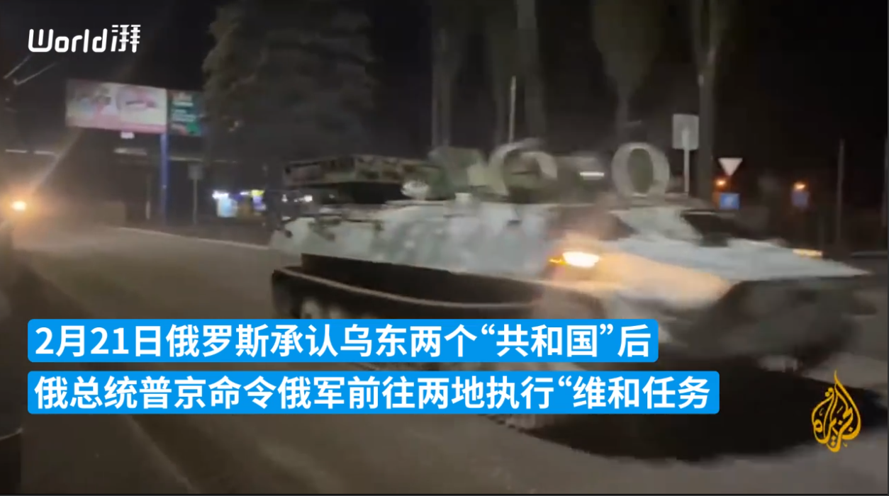 現場畫面截圖 另外,俄羅斯《觀點報》22日報道稱,網上有消息稱俄軍已開始抵達頓巴斯地區,也有人公佈了相關視頻。