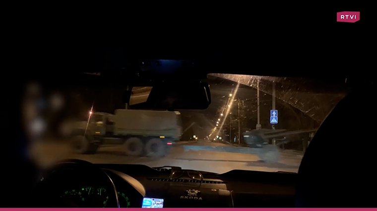 視頻截圖 報道稱,國際文傳電訊社援引目擊者的話說,兩個裝甲車隊已處於“頓涅茨克共和國”並向該其北部和西部前進。 報道還稱,烏克蘭OstroV通訊社援引社交媒體的消息稱,“俄軍第一批部隊正進入”頓巴斯地區。