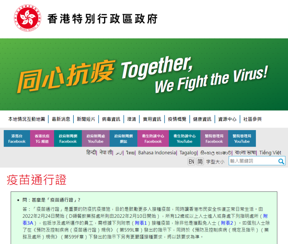 香港政府推行“疫苗通行證” 今日起正式實施分享到: