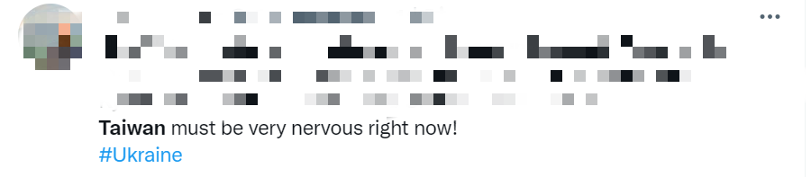 有網友表示:“今日的烏克蘭就是明日的台灣!”“台灣現在一定緊張得不行了!”