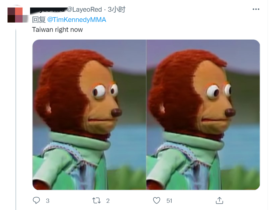 一位外國網友就俄烏危機犀利地點評道,“你們猜現在誰嚇得不行了?台灣!”隨即躍升為推特熱門。
