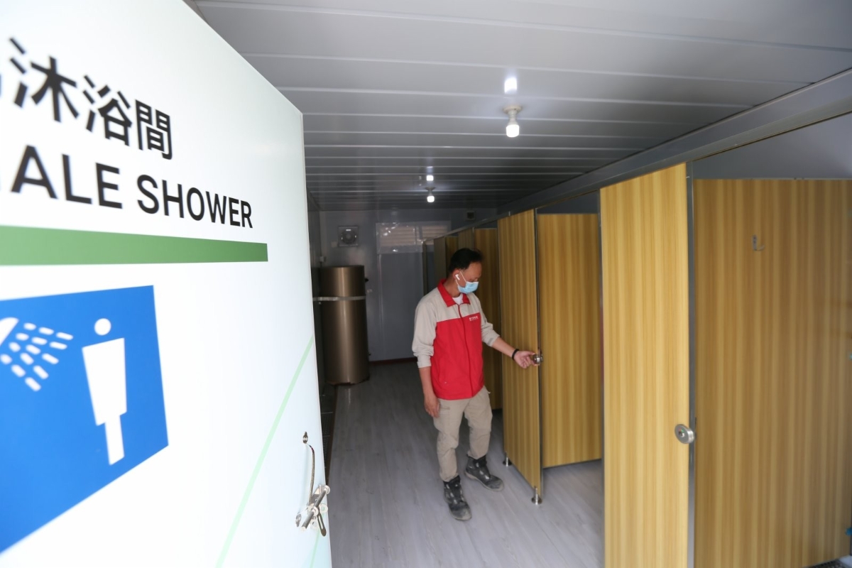 圖片來源:新華社 隔離房間外,設有病患共用的淋浴間和洗手間,各有5個厠格和淋浴設施,有關設置與亞博館社區治療設施以及公立醫院類似。 不同與用作隔離設施竹篙灣檢疫中心,據悉,方艙醫院還設有指定區域,可供病患活動,這更利於病患恢復體力。