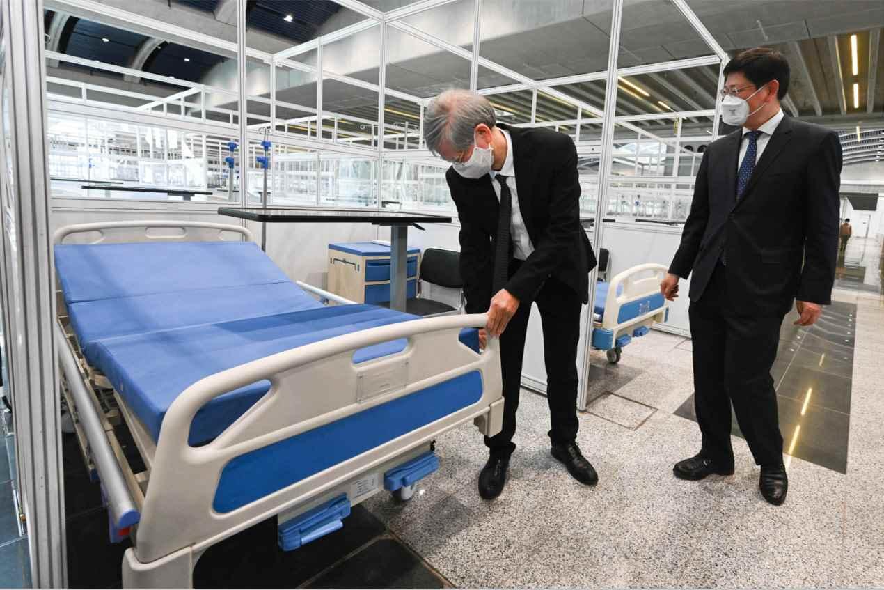 圖為羅致光博士(左)在中建集團執行董事兼財務總監周漢成陪同下,了解醫療床的安裝過程。 來源:香港中通社 現時共有7306名染疫病人分別於各公立醫院、北大嶼山醫院香港感染控制中心、醫院管理局傳染病中心、位於亞洲國際博覽館的社區治療設施留醫;逾1100名病人在竹篙灣社區隔離設施隔離。 老人院持續暴疫打針間隔縮短 據統計,至今共755間安老院或殘疾人士院舍暴發疫情。逾七成安老院舍出現個案,共9800名院友感染,佔比13%;2850名員工染疫,佔比9.5%。 由於大量院舍暴發疫情,衛生署審視科學數據後,縮短院舍人士接種首兩劑科興疫苗的間隔至21日,染疫院友康復4個禮拜後可以接種疫苗。 落馬洲兩隔離工程全速興建 中央援建的青衣方艙醫院建成使用後,位於香港落馬洲河套區的應急醫院、方艙醫院項目正全速推展,可提供逾萬張病床。為盡快完成項目,特區政府引用《緊急情況規例》,同意建設臨時橋樑連接深圳邊境,讓工程人員和物資可以最短時間進出。 中央援港5萬盒連花清瘟膠囊予市民作抗疫之用,4日中午12時起市民可以透過網上登記,先到先得。當天中午12時,記者登入後一直顯示線路繁忙。負責派發的“全港社區抗疫連線”下午表示,已收到超額登記申請,當天15時30分之後的登記申請將列為無效。同時,百佳超市宣佈,每位港人只能購買五盒退燒藥。 行政長官林鄭月娥4日率領抗疫官員與內地專家組會晤。她表示,同意專家意見指當前要務是集中醫療資源在最有需要患者身上,加強防止輕症轉為重症,減少重症甚至死亡個案,醫管局正陸續增加病床,接收確診病人;食衛局則正推動公私營合作。 全民檢測定必兼顧金融業 多名立法會議員關注全民強檢及禁足安排;食物及衛生局副局長徐德義回應,全民強檢行動會兼顧不同層面的需要,敲定細節後會公佈安排。 財經事務及庫務局局長許正宇在一個會議上強調,在奮力抗撃疫情之際,一定會考慮市場有序營運的需要,包括交易、結算及支付等重要環節,讓金融業繼續發揮融通及配置資金和管理風險的重要功能,服務實體經濟。特區政府在推行全民強制檢測計劃時,定必兼顧金融業的特質和保障香港作為國際金融中心的地位。 深圳加強口岸核酸檢測能量 香港第五波疫情對深圳市各大口岸造成巨大壓力。3月2日深圳口岸檢測出23名跨境貨車司機核酸陽性。2月4日以來,深圳口岸已檢出296名跨境司機陽性病例。 為防範香港疫情擴散,同時保障香港物資供應,確保口岸深港跨境貨車司機新冠病毒核酸檢測及時、準確,港大深圳醫院在深圳灣口岸緊急啟動核酸檢測實驗室改擴建工程。(完) 【編輯:胡雪石】