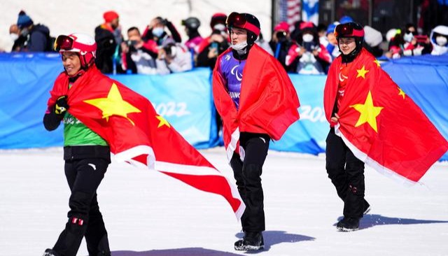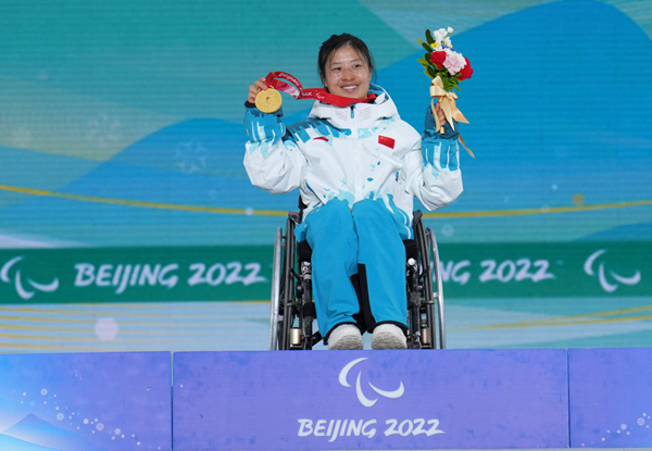 3月12日,冠軍中國選手楊洪瓊在頒獎儀式上。本屆冬殘奧會上,她包攬了殘奧越野滑雪女子坐姿組短距離、中距離、長距離3個項目金牌,是中國體育代表團獲得金牌數量最多的運動員。新華社記者 胡虎虎攝 此次北京冬殘奧會,中國體育代表團中有85名運動員為首次參加冬殘奧會,占比88.5%,平均年齡為25歲。中國體育代表團參加了輪椅冰壺、殘奧冰球、殘奧高山滑雪、殘奧單板滑雪、殘奧越野滑雪和冬季兩項全部6個大項、73個小項的角逐。這是中國參加冬殘奧會以來,代表團規模最大、運動員人數最多、參賽項目最全的一屆,參賽各大項均取得歷史最好成績。 雪上項目,中國體育代表團取得歷史性突破。北京冬殘奧會,中國體育代表團在殘奧高山滑雪、單板滑雪、越野滑雪和冬季兩項4個大項均獲得金牌,雪上項目隊共奪得17枚金牌、20枚銀牌、22枚銅牌,實現了歷史性突破。 同時,中國冰上項目全面進入世界強隊行列。輪椅冰壺隊在平昌冬殘奧會奪冠,以十連勝的成績衛冕。殘奧冰球項目2017年開始組建國家隊,於2019年、2021年分別獲得C 組世錦賽、B組世錦賽冠軍,最終憑實力打進了本屆冬殘奧會,並在小組賽全勝。3月12日,中國殘奧冰球4比0戰勝韓國隊收獲一枚銅牌。(完) 【編輯:张丽欣】