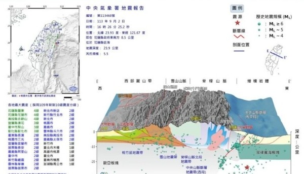 台灣花蓮發生6.6級地震 921大地震後排名第四分享到: