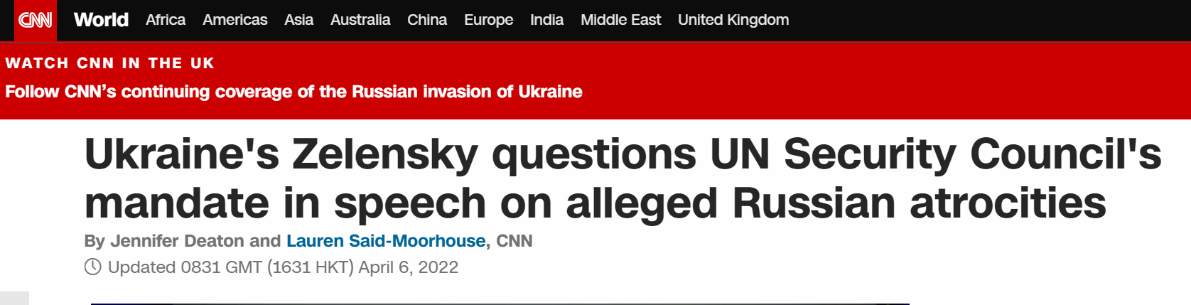 在網友熱議澤連斯基控訴西方大國的同時,CNN、紐約時報、德國之聲等西方媒體卻幾乎“集體噤聲”、鮮有在報道中提及澤連斯基為阿富汗等國的“吶喊”,內容大都集中於澤連斯基對俄羅斯軍事行動以及聯合國安理會“不作為”的控訴。