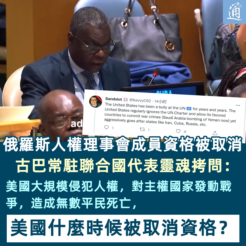 聯大暫停俄人權理事會資格 古巴大使靈魂拷問:不考慮取消美國嗎?分享到: