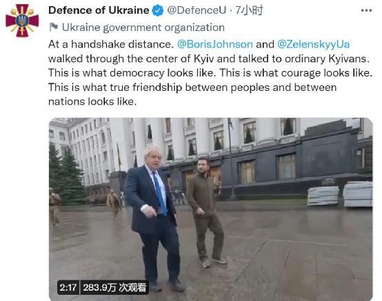 (圖:烏克蘭國防部推特) 據路透社報道,約翰遜在會談中向澤連斯基承諾將對俄羅斯實施更嚴厲的制裁,並為烏克蘭提供更多防禦性武器。 會談後,約翰遜表示,英國將向烏克蘭提供120輛裝甲車和新的反艦導彈系統。他還表示英國將通過國際貨幣基金組織向烏克蘭提供5億美元額外信貸擔保。同時英國還將增加對烏克蘭的軍事援助額度。 報道還稱,澤連斯基呼籲其他西方國家效仿英國,加大對俄羅斯的制裁力度。 此外,據法新社報道,烏總統辦公室發佈的一段視頻顯示,約翰遜與澤連斯基在安保人員的跟隨下,一同走過基輔街道,穿過空蕩蕩的基輔市中心。 約翰遜8日曾表示,英國將向烏克蘭提供價值1億英鎊的武器,包括“星紋”防空導彈和800枚反坦克導彈。(完) 【編輯:李彥洲】
