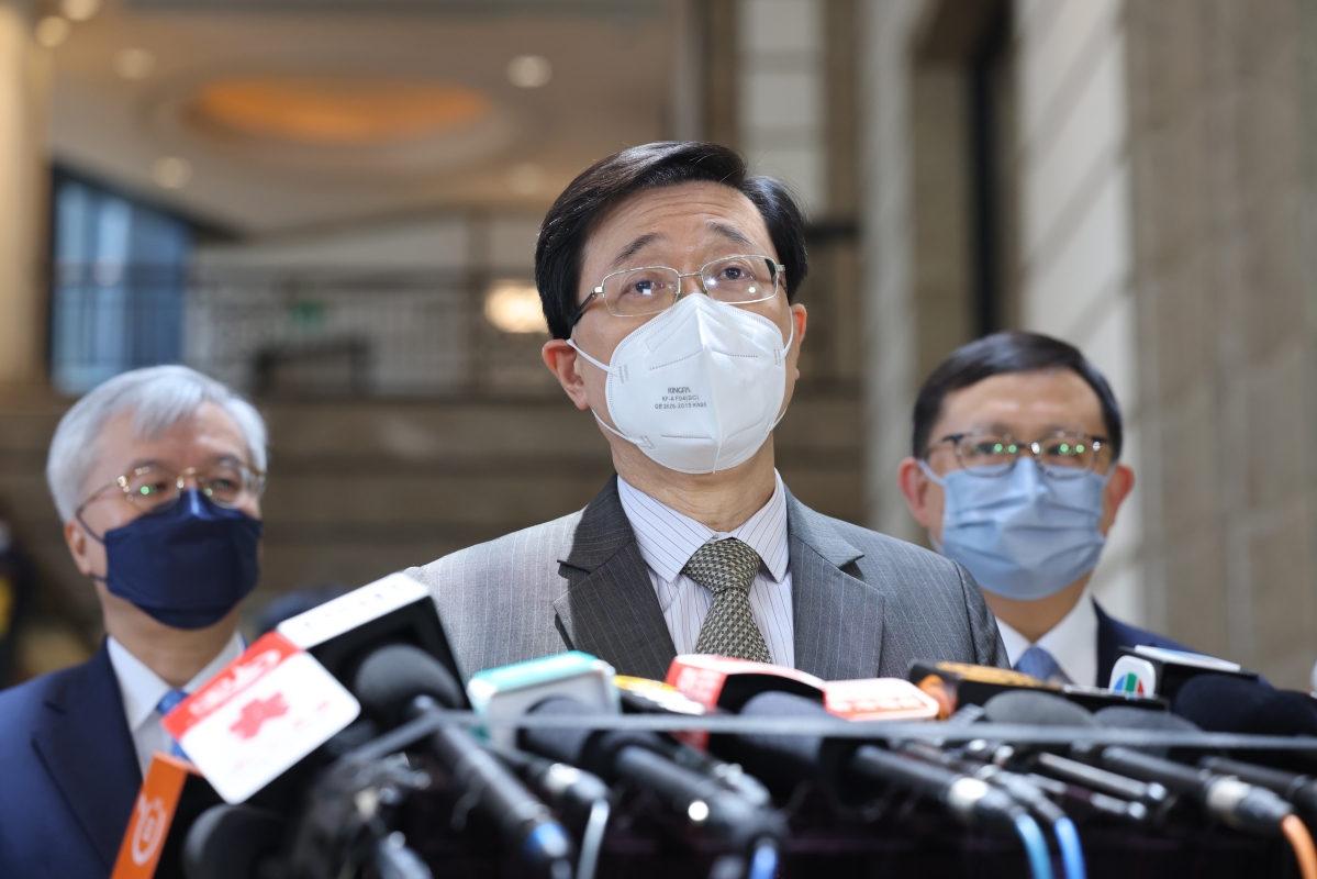 李家超14日下午見記者 香港中通社圖 當日,李家超與會計及法律界的選委舉行網上交流會,解釋施政方向,即以結果為目標解決不同問題、全面提昇香港競爭力、奠定香港發展的穩固基石;還廣泛討論香港的優勢和麵對的風險。 【編輯:王軼南】