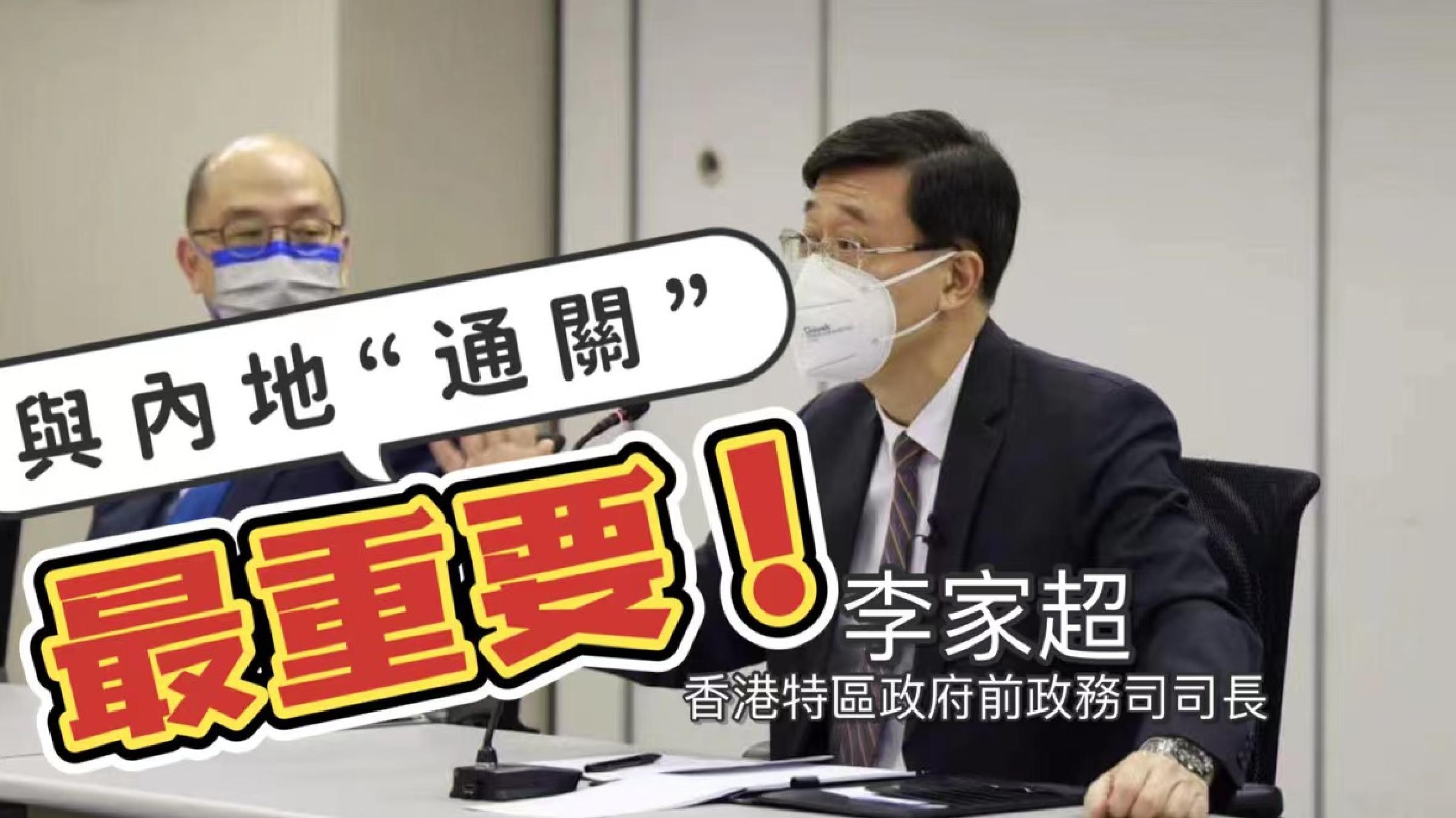李家超在參選記者會上提出“以結果為目標”的施政方向時,也舉了“通關”為例子,表示去年底已到“通關”龍門口,但可惜Omicron突然來襲。他指與內地商討“通關”時,雙方有很多差異,但最終都有共識,在差異下尋求對接方法。縱然大家做法不是完全一樣,但如能對接,或可達共同目的。 展開競選工程後,李家超在多場交流會和會後見記者時,反複提到了“通關”的話題,足以看出,這是目前香港市民最熱切的盼望,也將是李家超最重要的一項競選承諾。 4月11日,李家超開展十場線下拜訪活動。12日他在fb上表示;“我昨天跑了10場,聽了很多意見,也回應了不少提問,當中談到通關問題。我認為和內地通關最重要,我們的抗疫策略,一定要接連國家。本地的措施如果不可以配合內地的防疫抗疫策略,若和內地通不了關,對香港的發展有非常大的限制。”
