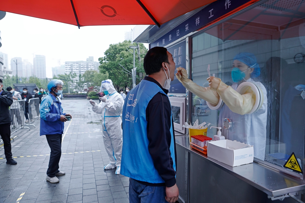 4月26日在上海市虹口區北外灘的核酸檢測便民採樣點 香港中通社圖 上海市的感染者和死亡病例仍然佔最多,但已呈現下降趨勢。上海市已採取全市常態化核酸檢測,以“固定采樣點+便民采樣點+流動采樣點”相結合的方式,為市民進行核酸檢測。上海市衛健委26日向社會公佈常態化核酸采樣點首批名單,第一批共534個核酸採樣點位。 在中国最大经济城市上海因新冠感染病例激增實施分區管控近一个月后,首都北京也因感染人数增加而擴大核酸篩查範圍。 4月25日晚,北京市政府宣布在朝阳区已经开展核酸检测的基础上,进一步扩大区域筛查范围,从26日至30日,对东城、西城、海淀、丰台、石景山、房山、通州、顺义、昌平、大兴、经开区等11个区域人员开展三轮核酸检测。據健康北京官微消息,4月26日0時至24時,北京新增31例本土確診病例。 北京市商務局副局長趙衛東在26日的疫情防控新聞發佈會上表示,針對近日市民需求旺盛的情況,北京市有針對性地采取措施,確保批發端“進得來”,賣場“補得快”。門店物資充足,按日常3倍補貨。