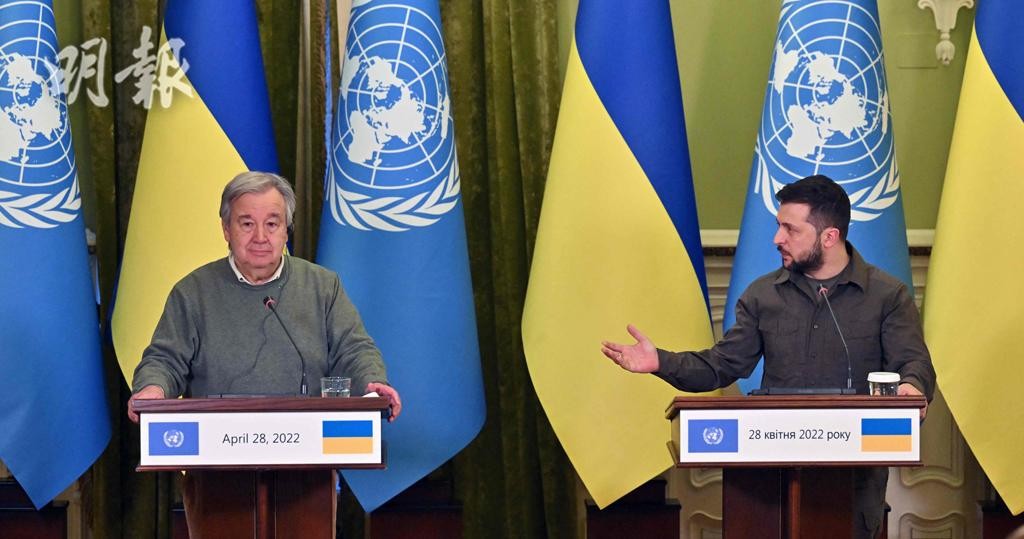 澤連斯基和古特雷斯在基輔會晤 圖源:明報