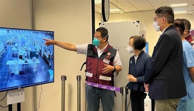 香港新聞網5月5日電 香港第五波疫情持續緩和,亞博館昨日(4日)起關閉,轉為備用狀態。一直在亞博館工作的內地援港醫療隊210多名隊員,今日(5日)啟程返回內地。 內地援港醫療隊領隊崇雨田與其他醫療隊員昨日(4日)接受市民代表致送的錦旗和18區市民感謝留言紀念冊。崇雨田表示,今次在香港的工作順利,得到特區政府、食衞局、醫管局以及廣大市民支持,而內地和香港醫護在這一個多月來,通力合作,為病人提供較好的醫療和護理服務。