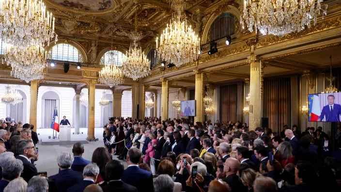 法國總統馬克龍在愛麗舍宮舉行了第二個任期的就職儀式。圖源:央視新聞 在儀式上,他發表講話表示,法國當前同時面臨著俄烏衝突、新冠疫情和氣候變化等多重挑戰,他認為法國人民應該為未來選擇清晰明確的計劃。 馬克龍呼籲法國人行動起來,建立更加強大的軍隊、更加包容的學校,在男女平等上更加努力。為此,政府需要繼續改革,探索新的發展模式。 在就職儀式上,法國憲法委員會主席法比尤斯宣佈了最終的選舉結果,確認了馬克龍的當選。 儀式在當地時間上午11時(北京時間17時)開始。參加儀式的大約有450人,法國前兩任總統薩科齊和奧朗德都在邀請之列。據悉,就職儀式是樸素的,並“紮根於(法蘭西)共和國的歷史”。 按照傳統,馬克龍還就任了法國國家榮譽軍團大元帥。當天,法國榮軍院鳴放了21響禮炮。 【編輯:馬華】