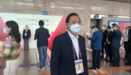 香港新聞網5月8日電 8日早上9點,香港特區第六屆行政長官選舉開始投票。來自五個界別的選委陸續到達位於灣仔會展中心的主投票站投票。中華全國歸國華僑聯合會委員吳志斌接受香港新聞網採訪時指出,李家超的競選口號說出了全香港市民的心聲,為香港同開新篇。