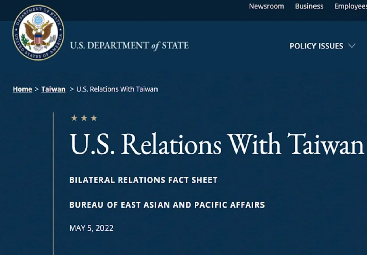 美國國務院官網截圖 在更新於本月5日的美台關係介紹中,美國國務院刪除了“美國不支持台獨”等若干重要表述,並且增加了涉及美國對台軍售的“六項保證”等內容。 【編輯:王軼南】