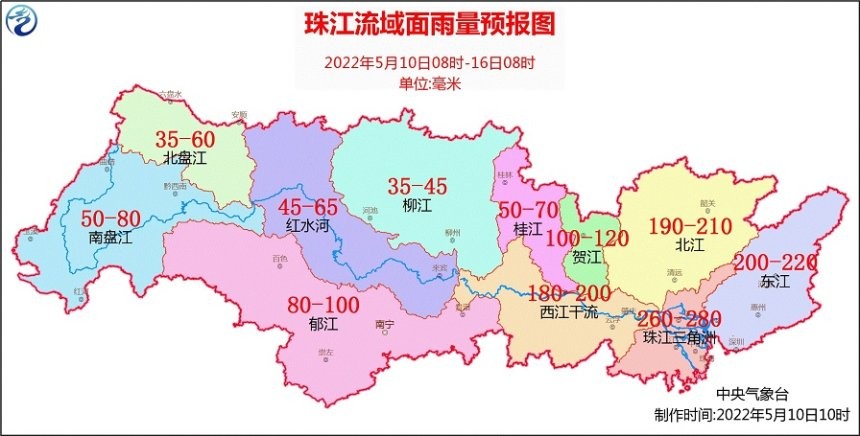 珠江流域雨量預報圖 圖源:中央氣象台 粵港澳大灣區和珠江流域累計降水或達歷史同期極值