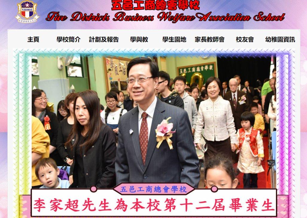 香港新聞網5月12日電 香港特區第六屆行政長官選舉5月8日順利舉行,李家超高票當選香港特區第六屆行政長官人選。他小學時就讀的深水埗五邑工商總會學校亦有相關慶祝活動,於學校外牆掛上巨型直幡,印有“熱烈祝賀”、“校友李家超”等字眼。學校官網展示多張李家超出席校慶活動的相片,校內壁報亦展示李家超在2018年以保安局局長身份參加校慶典禮的相片。該校校友會亦於社交網站帖文,祝賀李家超當選新一任行政長官人選。