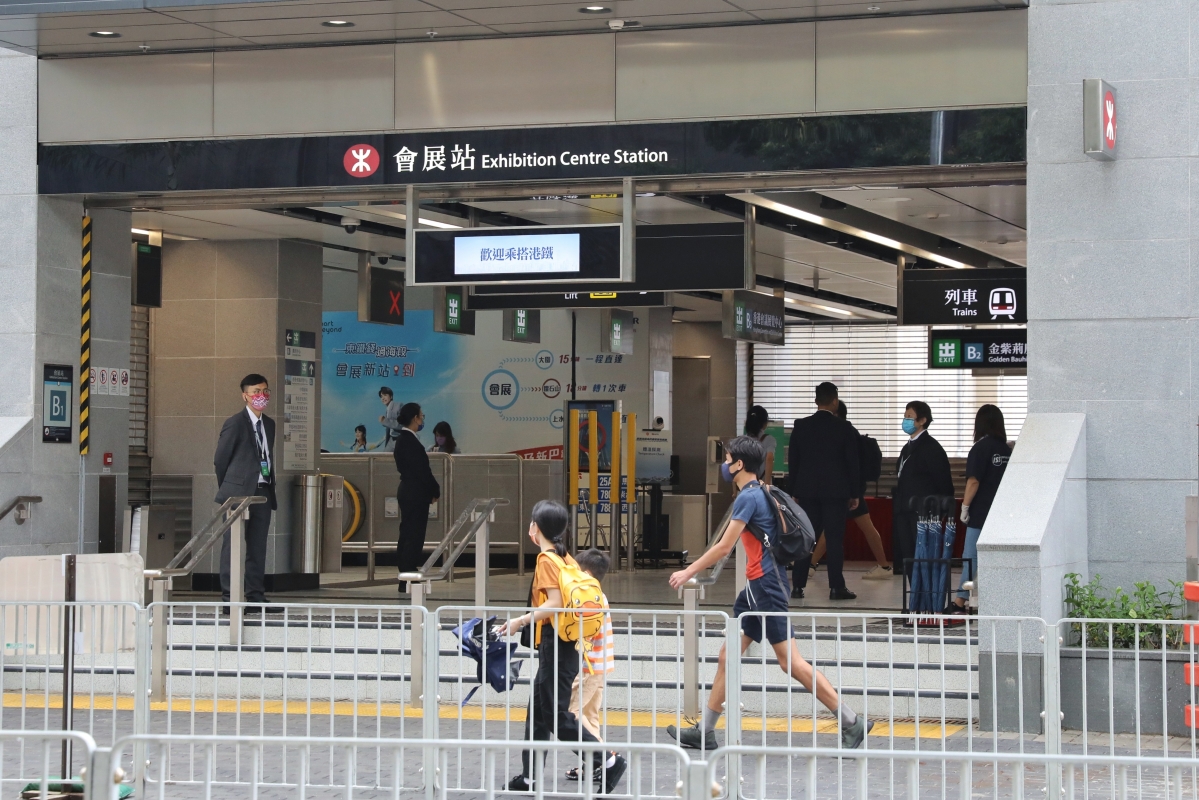 會展站大堂指示牌。香港中通社記者 謝光磊 攝 施工期間發現二戰留下炸彈 東鐵線過海段雖然只有短短的6公里,但施工期間克服不少難關。 在擴建金鐘站時,工程團隊須在營運中的港島線隧道下逐層挖掘岩石,深度達到地面以下大約50米,同時要確保現有列車服務不受影響。 因應不同地質狀況和施工環境,在短短6公里長的過海段隧道路段用上4種不同的隧道建造方法,而這亦為香港工程界創下一項紀錄。 在會展站施工期間,工地範圍內發現了三枚二次大戰留下的炸彈,須先後由警察爆炸品處理課到場拆除;其中一枚重達1000磅炸彈的彈殼現時展示於會展站月台,供市民參觀。 6公里的策略定位 在通車儀式上,特首林鄭月娥談到東鐵線的策略定位將更加重要:“它會將以國際金融中心為標誌的維港都會區,與我們建議建設國際創新科技中心的北部都會區緊密連接起來,達致香港南北兩個都會區并駕齊驅、互相輝映的願景,促進港深兩地進一步融合發展。”