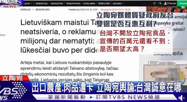 (台灣“TVBS新聞網”截圖) 據報導,2021年11月,立陶宛突然允許台灣當局設立所謂“駐立陶宛台灣代表處”;其後,便開始炒作中方為此“經濟制裁”立陶宛。 當時,台灣當局也是立馬跳出來,聲稱將會對立陶宛提供幫助,包括接收“被大陸拒收”漂流海上的2萬瓶立陶宛朗姆酒,還將成立2億美元額度的“中東歐投資基金”,及10億美元的融資基金,以促進台灣與立陶宛的產業合作及投資。 不過,據台灣“TVBS新聞網”報道,當地時間5月12日,立陶宛外交部長蘭茨貝爾吉斯 (Gabrielius Landsbergis)在立陶宛國會上備詢時就專門提到台灣,表示立陶宛產品可出口到台灣,卻遭到反對黨的質疑:“友台還換來了什麼好處?” 該報道稱,除了立陶宛反對黨的聲音,連日來,當地媒體的抨擊也不少。 有立陶宛媒體在報道標題中直接寫道:“台灣不開放立陶宛食品,宣傳的百萬元還看不到:期望太高了嗎?” 而該篇報導內文則提到:有立陶宛穀物商想出口穀物製品,並接觸了兩家台灣公司,已經嘗試談判了5個月;結果一家拒絕購買,另一家甚至連價格都沒有詢問。與此同時,立陶宛方面的肉品加工產業,還在苦苦等待台灣當局的進口許可證。 台灣當局“不買”、“不批”的態度,讓立陶宛企業和民眾代表不禁發出疑問:台灣與立陶宛檯面上喊“經濟合作”,實際上台灣的誠意在哪里? 除此之外,就在前幾天,當地時間5月9日,立陶宛媒體Delfi也曾報道稱:台灣拒絕購買立陶宛糧食廠商的穀物製品,理由是商品存在“質量問題”。 對於立陶宛媒體此次控訴台灣卡關,台灣農業部門負責人陳吉仲表示,絕對沒有卡關,指台灣農業部門3月已收到立陶宛牛肉輸出申請,正在加速處理中。 而台灣外事部門“次長”田中光則稱,“卡關”這個詞講得有點嚴重,其實他們都非常希望立陶宛產品盡快入台。 台灣民進黨籍“立委”羅致政也說,這是當地媒體的標題太過聳動,目前“台灣代表處”已經跟立陶宛的農業部門、媒體作了清楚說明。