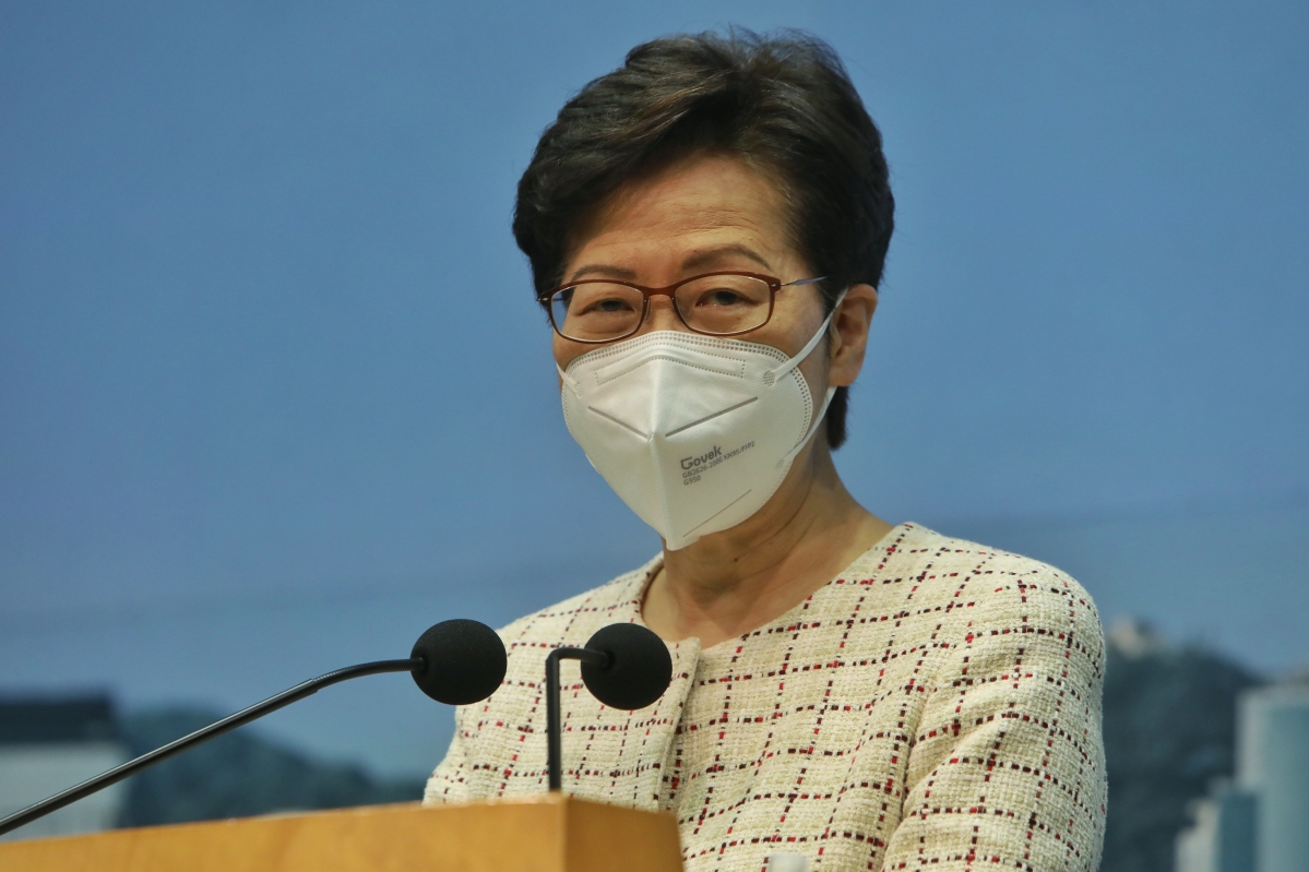 6月7日香港特首林鄭月娥出席行政會議前會見傳媒 香港中通社圖片