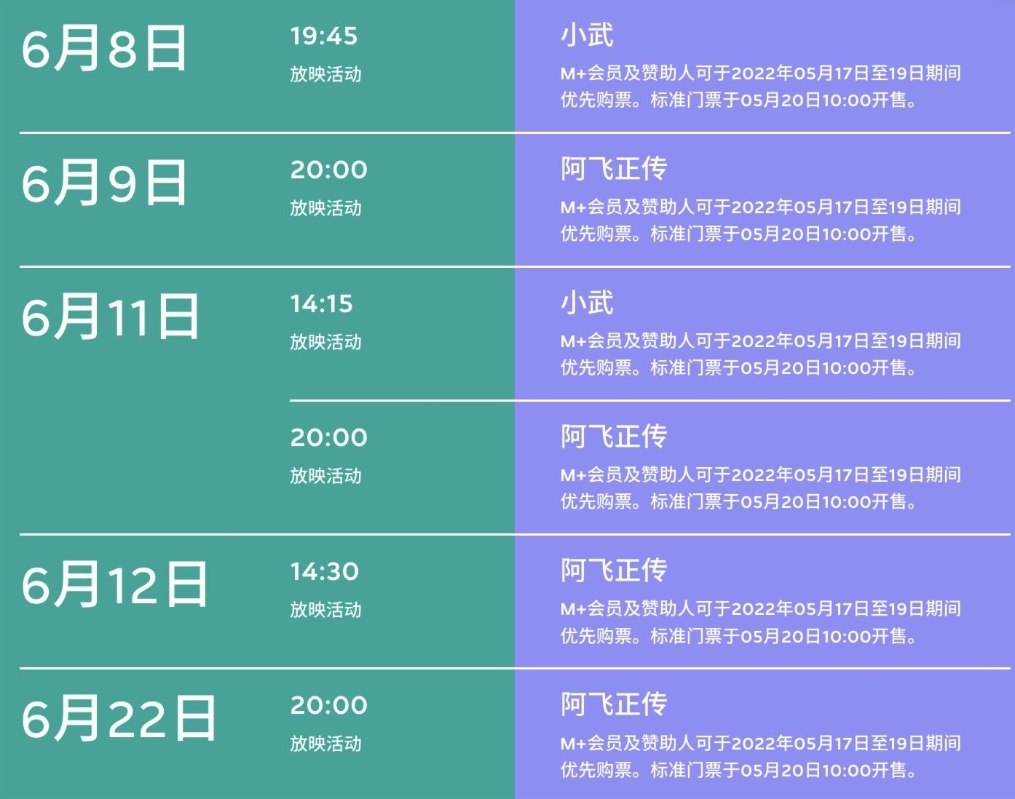 (網站截圖) M+影院設大中小3間影院,分別設180、60和40個座位。影院配備數碼及16毫米和35毫米菲林類比放映的設備,以及杜比7.1音響系統,並盡可能以電影的原始格式放映。票價方面,成人為85元(港幣,下同),成人半優惠票價每月擇一星期三推出,為43元。至於7至17歲小童、全日制學生、60歲或以上長者、殘疾人士及同行看護人及綜援人士則為68元。 【編輯:王瑶】