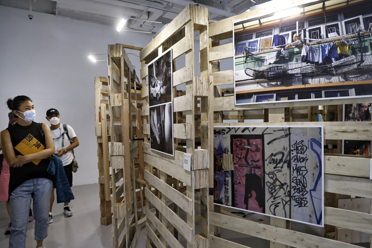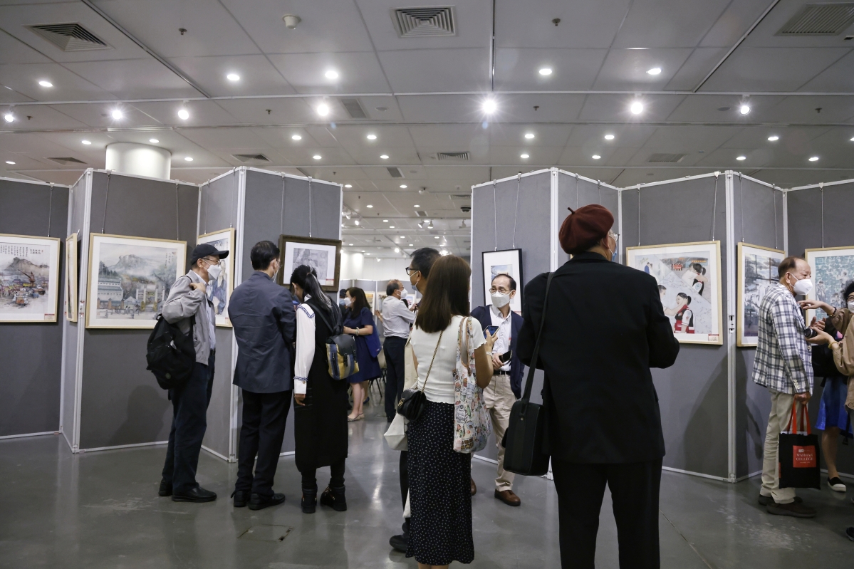 觀眾在參觀“人民至上 生命至上——香港抗疫美術作品展”。