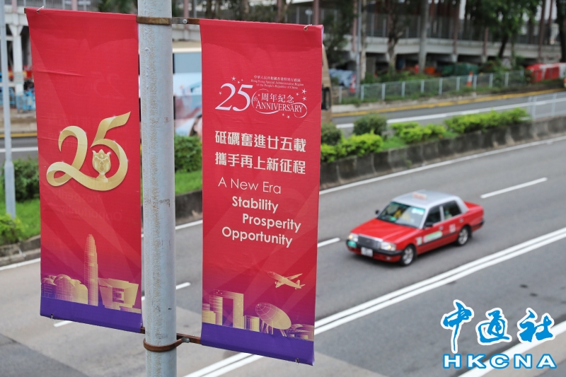 “七一”臨近 香港街頭慶回歸氣氛漸濃分享到: