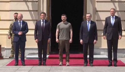 香港新聞網6月16日電 烏克蘭獨立通訊社當地時間16日報道稱,法、德、意三國領導人已抵達烏克蘭基輔附近的伊爾平并進行訪問,他們將與烏克蘭總統澤連斯基會面。