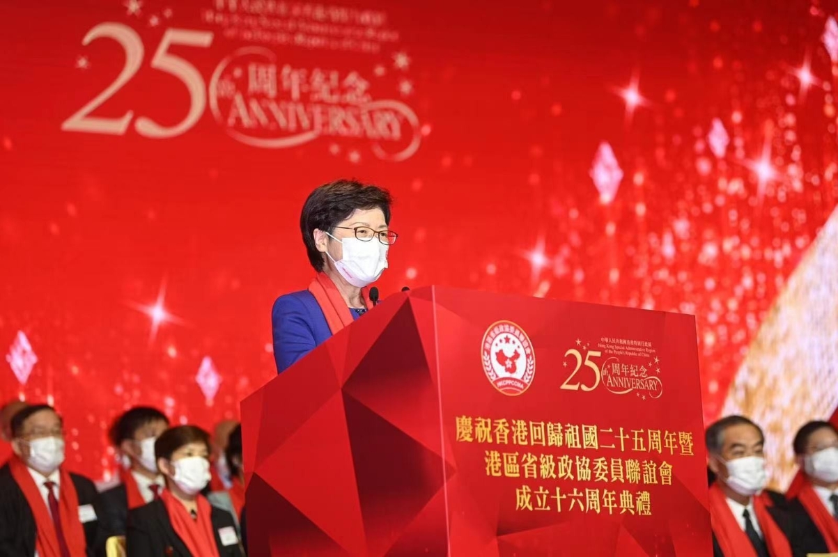 林鄭月娥表示,港區省級政協委員聯誼會是愛國愛港的佼佼者,聯誼會關心年輕人發展,支持青年走入大灣區;關心香港社區,疫情期間多次組織捐贈抗疫物資,是香港抗疫團隊的重要一員,希望聯誼會繼續成為特區良政善治的重要支持者、參與者和促成者。