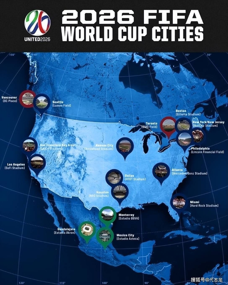 2026年世界杯主辦城市 圖源:搜狐號 2026年世界杯是史上首次有48支球隊參賽,因此比賽也變得更多。在美加墨三國聯合獲得2026年世界杯主辦權後,這三國共有22個城市申請主辦世界杯賽事。國際足聯經過考察評選後,最終確定了以下16個主辦城市: 【編輯:王軼南】
