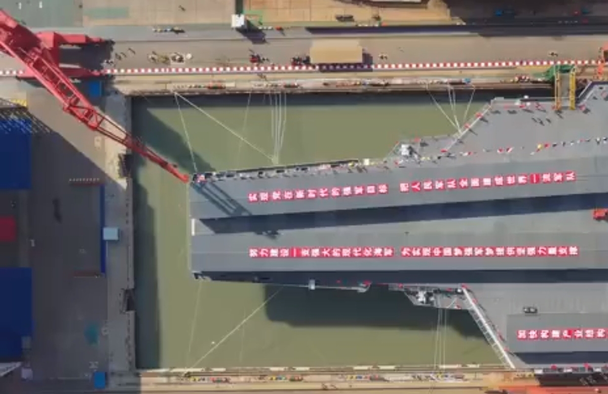 “福建艦” 資料圖 17日11時許,航母下水命名儀式開始。中共中央政治局委員、中央軍委副主席許其亮出席儀式。許其亮向接艦部隊主官授予命名證書,與軍地領導共同為中國第三艘航空母艦下水剪綵。 經中央軍委批准,中國第三艘航空母艦命名為“中國人民解放軍海軍福建艦”,舷號為“18”。“福建艦”是中國完全自主設計建造的首艘彈射型航空母艦,採用平直通長飛行甲板,配置電磁彈射和阻攔裝置,滿載排水量8萬餘噸。該艦下水後,將按計劃開展系泊試驗和航行試驗。