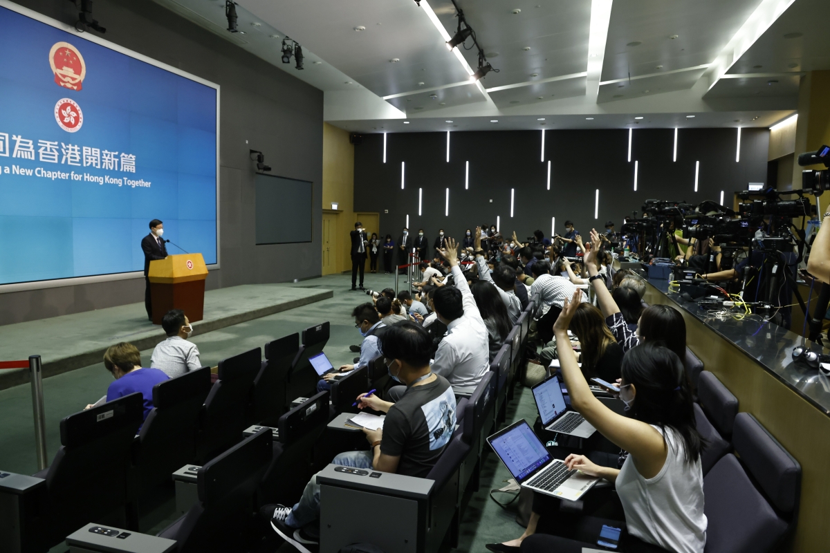 香港中通社記者 曹文毓 攝 26名主要官員中,有6名女性官員,佔新班子四分一,為歷屆政府最多。其中,21人出任司局長,6人是新加入政府。此外,新班子中的4名立法會議員,都需辭去現有職務。 李家超形容,新班子是一支多元、團結、忠誠及執行力強的團隊,與自己有共同施政理念,重視團隊精神,以結果為目標解決問題。大家會以誠懇的態度,聆聽、溝通及接觸市民,積極有為,以贏得市民的信任,為市民所想,解市民所困,提升施政效能,與市民及各界攜手共進,帶領香港共創更美好的明天。 新任命“五光十色” “港漂”在列 新一屆特區政府將落實“三司十五局”的新架構運作,並設三個副司長職位以強化統籌和推進政府政策。此次任命意味著新一屆特區政府管治團隊完成組建。