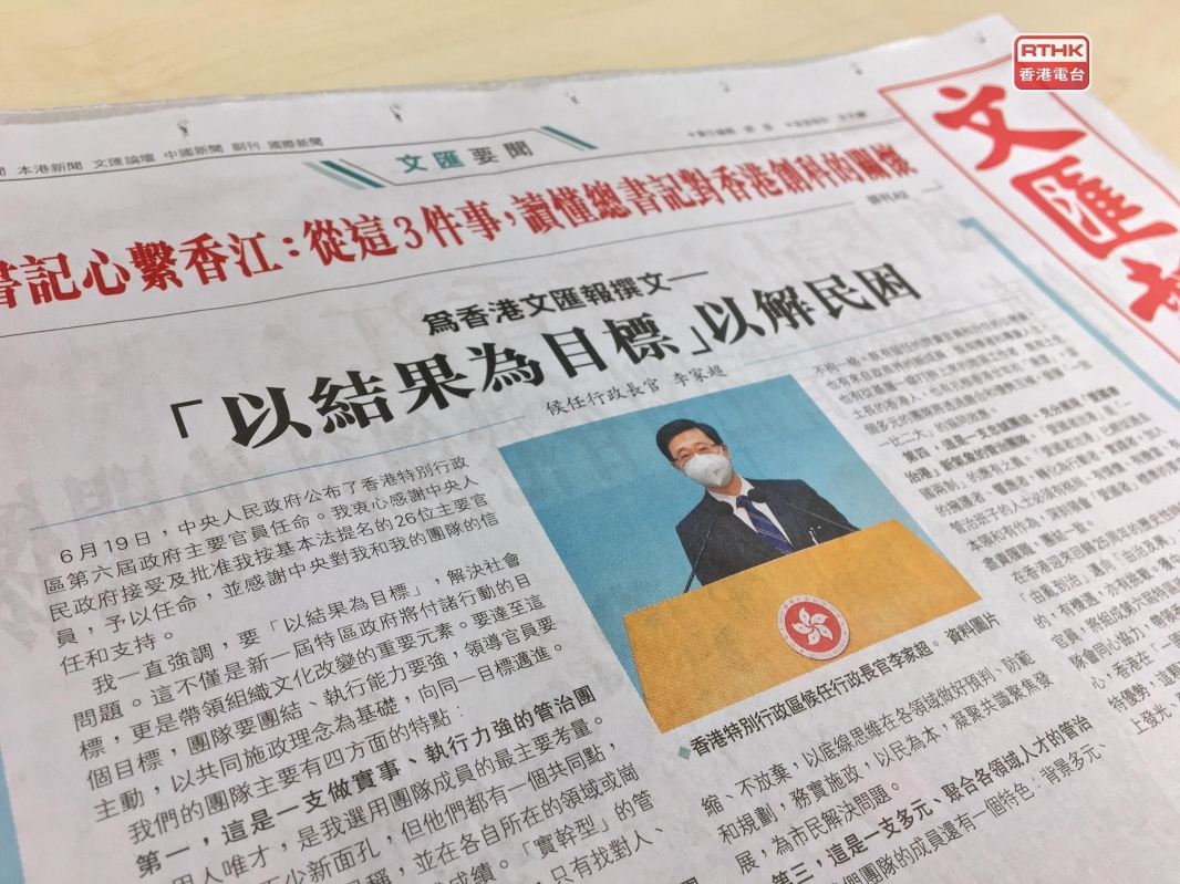 李家超为香港文匯報撰文 圖源:香港電台 李家超指出,他的團隊主要有四方面的特點: 【編輯:王軼南】