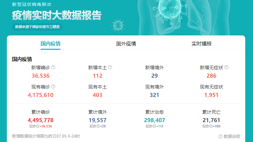 香港中通社7月6日電 7月5日,中國內地新增新冠肺炎確診病例141例,其中本土病例112例。新增本土無症狀感染者241例。無新增死亡病例。