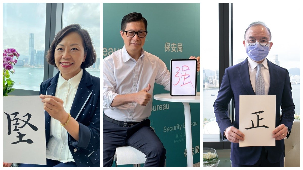 香港政府司局長“一人一字”勉勵考生 民政及青年事務局局長麥美娟選擇“堅”送給考生,“即係夠硬淨”;保安局局司鄧炳強則選他名字中“強”鼓勵考生,“只要信念强大,遇到任何事情都會自强不息,勇敢面對,成為最强嘅人”。轉任文化及體育旅遊局局長的原教育局局長楊潤雄也出手贈“新”字,“放榜後又是另一新的階段,大家將展開人生新一頁”;政制及內地事務局局長曾國衞則揀“正”字,“一時得失未論英雄,做人要堂堂正正,回饋社會,報效祖國”。