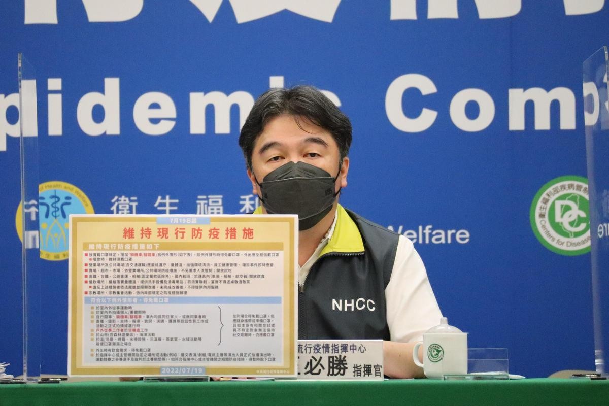 台灣疫情指揮中心宣佈放款口罩限制 圖源:台灣疫情指揮中心 當局指考慮到近日天氣炎熱,決定放寬措施以降低民眾不便。免戴口罩範圍將分階段進行,風險可控後就會繼續放開。 7月25日起台灣還將開放6類外籍人士入境,對象包含:志工、傳教弘法、研習、實習、國際交流、度假打工等,可以申請特別入境許可。但當局指此次放寬入境申請事由不包含港澳人士。 台灣19日新增26779宗新冠確診病例,另外再多37人死亡,是兩個月以來單日新低。 (完) 【編輯:王軼南】