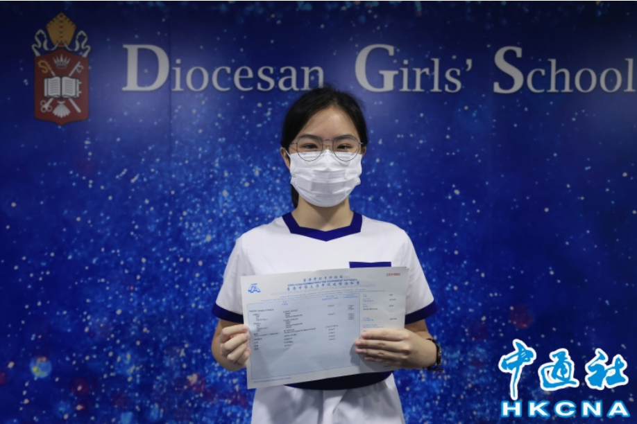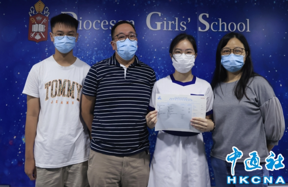 當日上午,來自拔萃女書院的狀元冼家朗與家人接受傳媒採訪,為取得的成績表示開心。