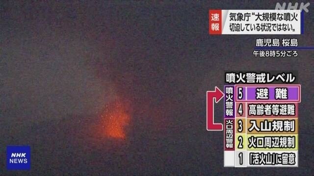 日本NHK新聞截圖 櫻島是位於日本九州南部鹿兒島灣內的一座活火山島,面積77平方公里,由北岳、中岳、南岳3座火山體組成。日本氣象廳說,當地時間24日20時05分,櫻島南岳山頂火山口發生噴發,受風力影響,煙塵朝東吹去。火山噴發帶來的火山碎屑流出2.5公里遠。鹿兒島市消防局的消息顯示,目前尚無人員傷亡報告。櫻島附近的仙台核電站未發現異常情況。