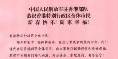 香港新聞網8月1日電 今天(8月1日)是中國人民解放軍建軍95周年。解放軍駐香港部隊司令員彭京堂和政治委員賴如鑫於“八一”建軍節前夕,通過駐軍官方新媒體平台刊發致辭,慶祝中國人民解放軍建軍95周年,代表駐香港部隊全體官兵向長期支持駐軍依法履行防務的香港特區政府、廣大香港同胞和各界朋友表示誠摯敬意和衷心感謝。