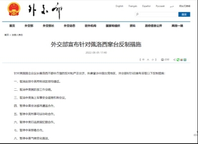 香港中通社8月6日電 (香港中通社特約記者 莊恭)日前,中國外交部針對美國國會眾議長佩洛西執意竄訪中國台灣地區宣佈一系列反制措施,其中包括取消中美間三項軍事交流機制和暫停兩國在司法、禁毒、氣候等多領域的合作。北京外交學者對中通社記者表示,佩洛西此次竄訪中國台灣地區,從根本上改變了中美在台灣問題上的整體態度及未來政策選項,影響未來中美戰略互動和整體關係發展,標志著中美在台海地區的競爭和衝突進入了一個新軌道。 吉林大學國際關係研究所副所長孫興傑教授對中通社記者表示,中國今次對美反制,堅持有理有利有節的基本方向,目的是表達中國對美國侵犯中國領土主權、在涉台問題上越界的強烈不滿,制止美國繼續掏空“一中”原則。