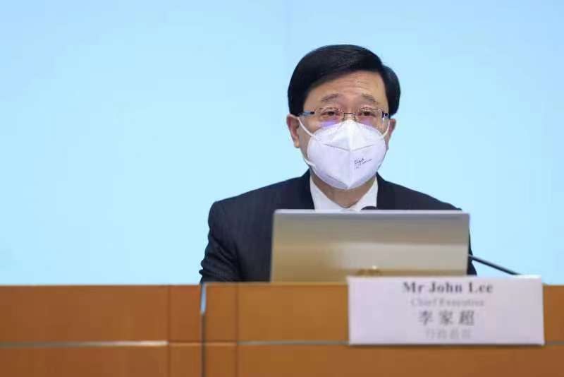 特首李家超在記者會上公佈檢疫新政策  香港中通社圖片