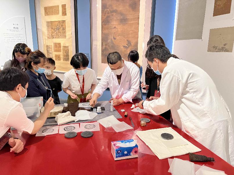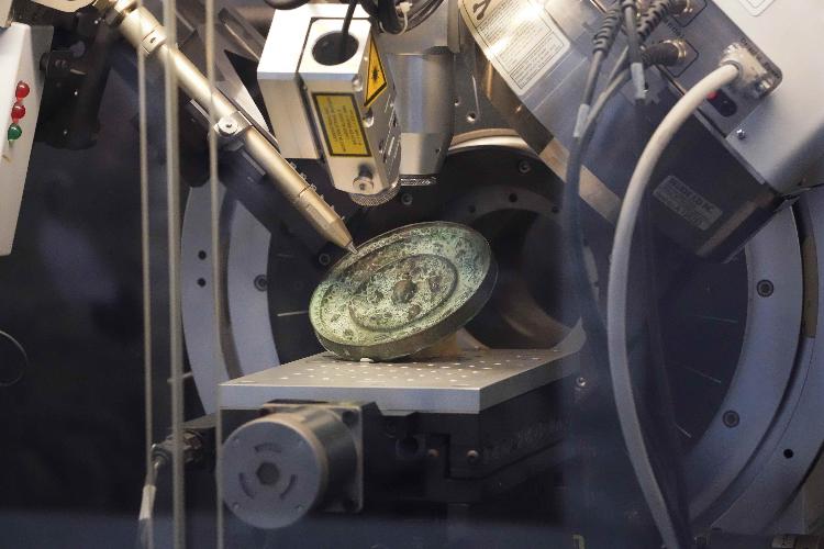工作人員介紹和展示全形拓技藝。 香港中通社圖片 展覽還展示了在館藏青銅偶方彝綜合保護研究時,利用X射線成像、紅外熱波成像、掃描電鏡能譜分析(SEM-EDS)、便攜式X射線熒光(pXRF)、 X射線衍射分析(XRD)、拉曼光譜分析(Raman)及三維視頻顯微鏡等方法,揭示青銅偶方彝的歷史修復狀況,分析修補材料的化學成分和分布位置,判斷銹蝕種類及其穩定性。其研究結果為包括偶方彝在內的眾多文物保護修復,提供了科學方法和寶貴經驗。(完) 【編輯:凌玉辉】