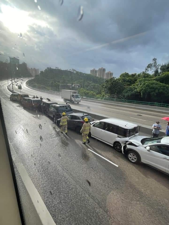 香港新聞網8月11日電 屯門公路今早(11日)發生9車連環相撞交通意外。上午約7時28分,多輛私家車及的士沿快線往九龍方向行駛,至近深井濾水廠對開時,疑因天雨路滑跣胎,至少9車首尾相撞。消息指3人受輕傷。