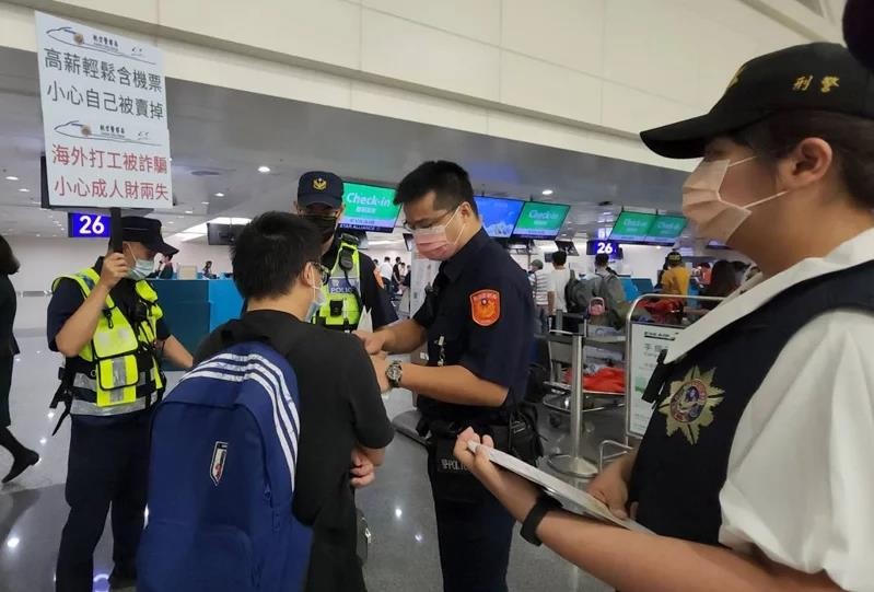 台灣警方在機場提醒勸阻民眾勿輕易受騙至其他地方 (圖片來源:台灣“聯合新聞”)