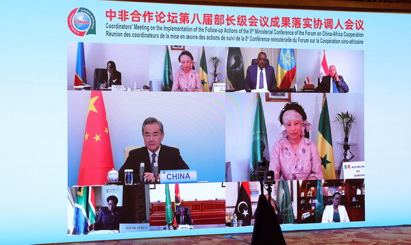 香港中通社8月19日電 中國國務委員兼外長王毅18日在北京以視頻方式主持中非合作論壇第八屆部長級會議成果落實協調人會議。王毅表示,中非共同捍衛國際公平正義,共同聚焦發展合作。